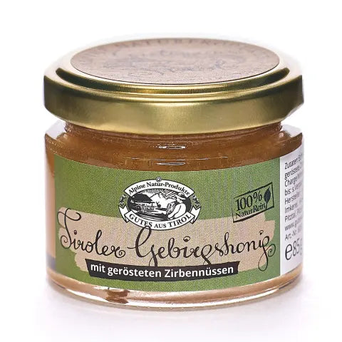 Alpine Tiroler Gebirgshonig mit gerösteten Zirbennüssen