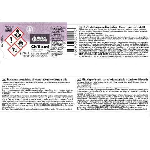 pinus cembra leaf twig oil, lavendula angustifolia flower oil, limonen, linalool, geraniol.* from natural essential oil